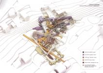The international competition to link the Alvar Aalto Museum with the Museum of Central Finland presented a unique opportunity to rethink both museums and explore Alvar Aalto’s architectural legacy. Through a refined abstraction of his work, a new architectural language harmoniously blurs the boundaries between old and new, establishing a dynamic ‘ensemble’ that not only highlights the museum’s collections, but also creates a sense of unity and roots the museum in the site.