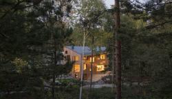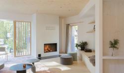MK5 is the latest project of ORTRAUM Architects, built for one of the partners of the office and his family of five. The house is placed on a south-west sloping 500m2 site, located on the Jollas Peninsula east of the Helsinki city centre. The architecture features a central kink in plan, which (according to the Finnish tradition) avoids a direct view towards the neighbours, and leads the main spaces to face the ocean towards the west. The buildings relationship to the natural surroundings inspired the diverse placement of the windows, framing the changing views and daylight qualities in each direction. The open-plan living room is accessed from the north and located on the ground floor, sauna functions and building services are placed in the basement. The four bedrooms are located upstairs. The geometric layout of the plan accumulates on the mezzanine level, where the three children’s rooms and the master bedroom connect in the centre point of the building, allowing for multiple consultation options before bedtime.
