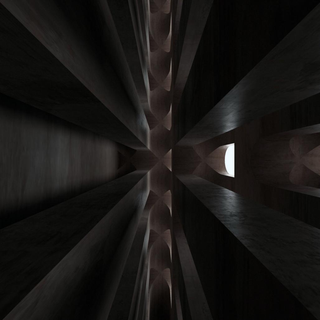 From here we have access to stairs, which rise to the interior of the museum. In the rising sun entrance, we access the great gallery, a vaulted space with a large amplitude, where light is diffused through the holes, spreading the air and the sound. The building is to be lived through all senses. At the west entrance, we have the galleries, two vaulted spaces with permeability between them.