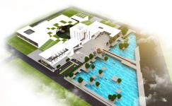 The Project site is located inside the urban realm. Creating a exhibition space for the trading companies as a significant model for the Bangladesh as well we consider the nature. Pre- fabricated structure inside the nature can be a part of the nature. To create a vista all the natural elements are gathered altogether like water and trees. The big waterbody at the front side represent the delta of Bangladesh and a grandness of the functions. The trees create a buffer zone for the heat generates from the waterbody.