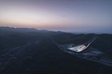 On a macro scale, the site is located at the southern ridge of Yunmen Mountain. The piste is the only artificial feature visible against the naturally dark mountain backdrop, while most of the architectural bulk is tucked below the piste itself, which terminates 12 meters above the access road. Within this 12 meters, the Ski Resort Service Center opens out to the same access road, welcoming visitors, and keeping support spaces out of the skiers’ viewpoint. Skiers can thus focus on the piste itself, while enjoying views out to nature.