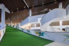 The planning of the piste had been closely collaborated with Slope Specialist JianFeng, to craft slopes of varying difficulties and functions.In order to meet the needs of different programs, there are 10 degrees lane at the primary level; 15 degrees at the intermediate level for snowboarding run; and the tubing slopes are set at 6, 15, and 20 degrees respectively. It is necessary to apply the longest slope to meet the trend of the ridge and the scenery, as well as six slopes are aligned with the width of the service area below.