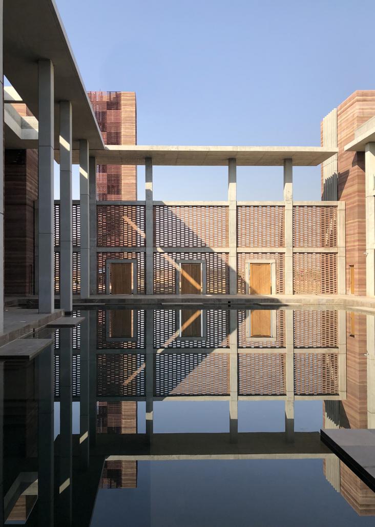 The material palette used on the façade creates a dialogue between the building, the landscape in the context and the surrounding urban fabric. The expression of the materials is celebrated through the use of fair-faced concrete, rammed earth and local stone. The stabilized rammed earth walls strongly depict the natural hues of the Potohar Valley soil belonging to this area. The conversation continues in the internal courts with the use of local stone in the stepwell and ‘Jaali’ screens which filter the harsh summer sun
