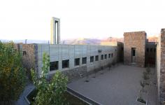 The Architecture for this Provincial Hospital respects and understands the nature of living and building in rural communities of Bamyan. It draws inspiration from the traditional methodologies of the built environment, and the simplicity of forms seen in the local vernacular in the context of home and village settings. The Hospital Master Plan is developed around a series of courts. All outdoor spaces are arranged in a layered sequence, moving from areas of greater public usage to the absolute private areas required for critical care and well-being of patients. Overall, our attempt is to take a “biophilic” approach to design, where through natural light and ventilation, views of mountains and gardens and access to outdoor courts, an Architecture is created which fosters healing and well-being. A North – South orientation is developed to maximize solar gain in winter and optimize day lighting. Through this strategy light is brought into all the corridors and wards. This orientation also ensures a strong visual tie with the mountain range running south of the project. Through the design, we have attempted to introduce hybrid construction solutions which meet the rigorous demands of seismic design for a high risk area, while inculcating practices which are embedded in the local building traditions. The design is also sensitive to the fact that Bamyan lacks technically skilled craftsmen or labour, and so in this rural setting our detailing is kept simple. In this regard stabilized rammed earth is used as external walls along with RCC frame construction. With this adaptation to the prevalent use of “as dug earth” walls, local labour was employed and trained to use a more durable form of earth construction. Realizing the almost non-existent nature of infrastructure in Bamyan, we relied on Sustainable Design Practices, such as; natural lighting and ventilation, achieving high insulative values, recycling grey water and developing landscape sensitive to the natural aridness of the region. Solar power is used as the main energy source for the hospital since there is no provision for electricity in town. The stabilized rammed earth walls, due to their thickness (450mm), provide a thermal mass to the building. A stone plinth structure, enhances protection from moisture and erosion. Double glazed Aluminium windows are used with low-E glass. The latter provides the insulative protection required.