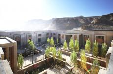 The site is organized as a layered sequence of courts (analogy derived from traditional villages). The Hospital is entered from the western quadrant along the main Street into an Arrival Court. This is a large space (27m x 50m) from where patients and visitors move into three distinct zones; Entrance Court (48m x 24m), Accident and Emergency Court (21m x 21m) and Car Park Court (30m x 59m). Externally, the hospital caters to three distinct traffic movements. Pedestrians, vehicular and ambulances.Internally, the hospital caters to a three tier circulation system consisting of visitor corridors, in-patient corridors and service corridors.These have been designed to ensure that no crossover between various movements takes place, thus enhancing privacy and sterility. Bamyan’s climate and topography lends itself to a landscape of strong contrasts. The mountains are stark and arid, while its valleys are green, with farm land, orchards and streams. The landscape design takes inspiration from the juxtapositioning of these two extremes to develop a design which is based on the tradition of Central Asian/Islamic landscapes, centre around courts. The Central Hospital courtyard derives its inspiration from the traditional “ Char-Bagh”courts. Strongly defined and axes have been accentuated through landscaping edges. We see these gardens and courtyards as essential to the process of healing. Indigenous flora and fauna has been used for soft landscaping and trees such as poplars and cypress to define outdoor spaces. Fruit trees such as apples and apricots provide shading, emphasize seasons and enhance fragrance. This attitude helps the sustainable design which is further accentuated by the use of indigenous vegetation and gravel as a ground cover to limit the use of water.