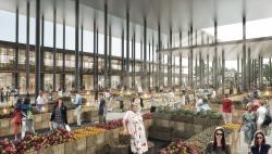 Program: Market area, shops, multipurpose meeting room, sports fields, promenades, classrooms