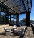 The building is situated just close to a stream bed, bringing freshness and water sounds effects to the visitors. To facilitate the access of the customers a small parking has been arranged at the entrance, as well as a pier on the seaside. The pedestrian way to access to the building is passing through the existing trees, and cross over the small river with a light bridge. It brings the visitors directly into the nature.