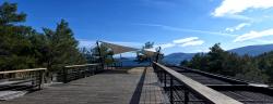 We first designed a large platform, shaded with a large pergola. Our building has been then inserted in between the platform and the pergola, as a separate element. In this way the sales office building can be easily reduced or increased according to the needs of the next users, inside the platform limits which are limited by the local authorities. It can also be totally dismounted while preserving the platform.