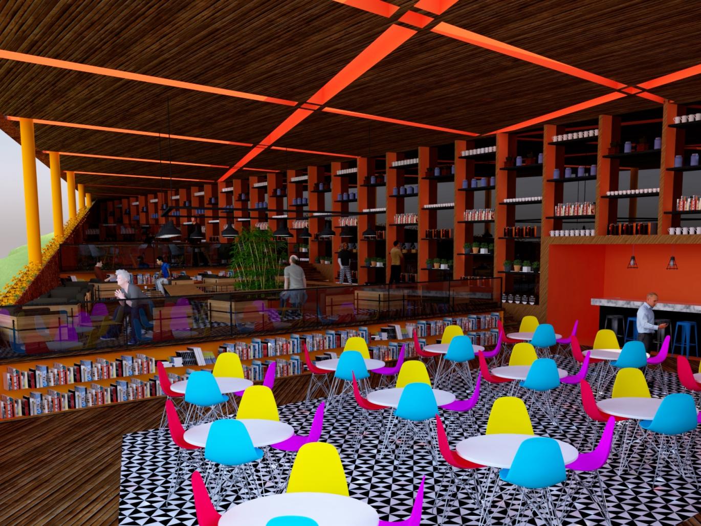 The structure is designed to sit on the slope of the plot. Four different seating areas were identified in the café by the land slope.