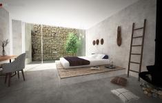 These materials contribute to the integration in the landscape and dematerialize the volumes, whose interior and exterior spaces are diluted by the torn plans that design the house and are complemented by the garden and landscaping.