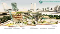 GroundScraper uses space as a (Common Ground) for the community. Where factory processes could be seen from every angle in the building. Green Pockets carved into building envelops punctures in natural light and ventilation. Amidst the processes, the GroundScraper appears slowly as visitors journey into the sunken courtyard hugging and shaped from the natural terrains of the ground conditions.