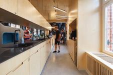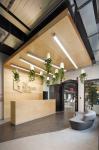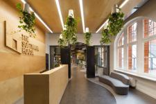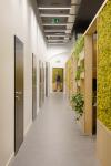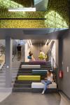 Not only furniture is ecological. Leitmotiv of the project is living greenery which occurs at every step. There are plants everywhere - integrated into shelves, climbing on walls, hanging on special platforms above the heads. That was intentional design so as to improve not only the aesthetics but also the indoor climate. Plants are treated here equally with ventilation and air conditioning - they improve humidity, regulate temperature and produce oxygen. Oxygen for the brain, design for creativity.