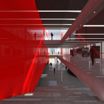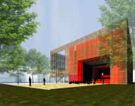 The main idea is that the building consists of two frames framed in green, which creates a variety of interferences in different levels, thus varying the relationship with the park. Thanks to the stage opening to the park from the stage to the park, the city-hall relationship; not as a hall in the city, but as a hall of the city.