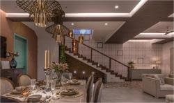 Built on area of 6750 sq. ft., the design is an end product of the designer’s skills and the client’s choice of residence - a contemporary residence with distinctive Indian features and vibes. The façade has been designed keeping in mind the concept of symmetry, equitable distribution and adjoining two semi private spaces. The project is segregated in two major spaces that is the residence on the left and the one on the right, both connected with a middle buffer space that also acts as the semi-private interaction space between the two residences. It has been judiciously used by creating it into a green buffer and parking space with projected out balconies creating a shade on the ground floor.