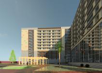 The entire built mass is envisioned to be an integrated Green-design approach.