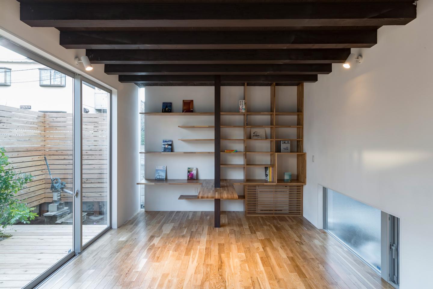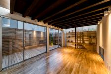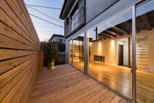 The wood terrace enfolded by the wood wall is isolated from the nearby environment. Children would happily enjoy themselves and the family would hold a party.