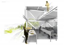 Aiming to find the balance between the needs and the wants, affordable and the niche, carved and the constructed, The west addition for the Campbell hall provides an attainable scheme while acknowledging the changing definitions of architectural education. this exploration resolves itself in a hybrid: a building both the factory and the school. the emerging archetype for architectural education.This defines a central open space for the school and a new face, acknowledging its context and defining its presence at an institution in its bicentennial.