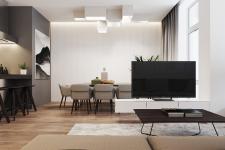 This project of apartment 88 m2 from the Tobi Architects was designed for a young couple in IQ House Building. At the base of our design lays the concept of open space, which harmoniously combines a cozy living room, modern kitchen and a spectacular dining area. In this interior, we tried to create an atmosphere in which you feel free and comfortable.