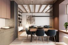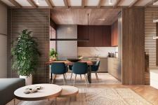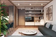 Bright, modern and elegant apartment for a young family by Tobi Architects. The main task for us was to divide the two functional zones – the kitchen and the living room. That is why we used a sliding door system, which created an easily transformable space . Spectacular colors, soft textiles, a combination of marble and wood created an interior with a special character.
