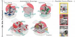 Today, urban contexts are facing two critical questions. It is that how they are going to treat “guests” and how they are going to adapt themselves within the quickly changing and demanding global environment considering their cultural heritage. These two questions are becoming even more meaningful in the chosen location; Antioch, Hatay, Turkey. Indicated location is selected as a project base due to its diverse social structure, and its huge architectural heritage. Throughout the history, the city had seen many civilizations and different ethnic groups inhabited in it. Nowadays, this mosaic of differences is continuing in Antakya, but limits of it are in question. Another key problem that the city is confronted with is the quick and unplanned development causing an urban sprawl and the loss of contained urban values which is unfortunately very widespread for Turkey. A supposedly simple but very complex basic instinct of human beings is proposed as a solution generator for mentioned issues. By its essence, the notion “PLAY” creates a common ground for people from disparate cultural groups. While conceiving encounter between people, it also leads them to explore and experience the urban context. These people who are establishing stronger bounds with their city, will act accordingly for the future of their cities. As the word brings a misunderstanding by its simplistic everyday usage, the name “ludicity” is given to the proposal with regard to the combination of the word “ludic” (showing spontaneous and undirected playfulness.) and “city”. As the design of what is going to be so called ludic should be formed in a bottom-up relationship, it is aimed to generate a participatory system for the people who will be thought as citizen players within their urban environment. So, an interchangeable system is created to be shaped by players. A table for programming of the space is established for the future and present spatial conception on different sites. In addition to this, some exemplary play seeds are formed for the specific programs which are selected to be present at the estimable location. The play seeds are regarded to be play catalyzers which will lead people to action and they are open to future additions of citizens. Genesis of time and place bounding events and their memory will create a society who would preserve their city while answering questions of forthcoming together and accordingly.