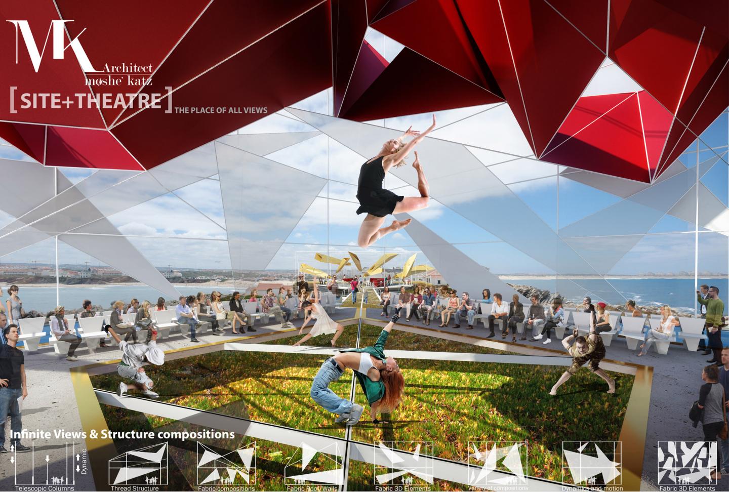THEATRE- Place of all VIEWS+ Arts expressions= The Place off all Human views and perspectives. is a dynamic idea of a space transforming itself to create different spatial compositions and view experiences with its surrounding. Together with the deep connection to the Site- as the creator of the language with which the project is planned.