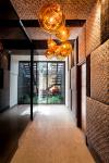 In general, the lighting is done taking into consideration individual spaces and their function. Quirky light fixtures, that draw attention and bind the elements of the space together, have been used. Natural light filters in from the double height courtyard, illuminating the spaces inside during the daytime.