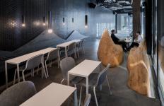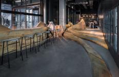 So we employ a set of new structural language in this project, to simulate the special mountainous space of Chongqing. The mountainous terrain is introduced into the restricted concrete space with integration of a more subtle scale of furniture. This amplifies the dimensional feeling of the space, and also introduces the more relaxed body gestures (sit, lie, squat, lean) of the Chongqing local people (as well as how a natural person in an old neighbourhood will behave) into such a scene of modern life.