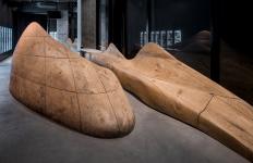 This set of design can be seen as topography, landscape, or furniture design. It includes the guide of sight line at the entrance, spatial partitions, footrests of bar counter, small articles for stroking while drinking, and large wood sofa and so on. The whole model is made of pure solid wood and carved by computerized digital control machine. The model is designed on computer, then prefabricated in the factory and assembled on site, which this technique improves the completeness of the model and also saves the time of on-site work.