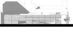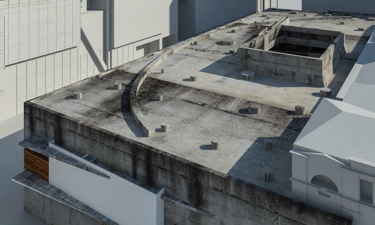 The heart of the design is an open courtyard used as an open-air theater for performances with an old existing building as the backstage. Management offices, cafe, a conference room, and an exhibiting space with artists workshop occupies the ground floor. The first floor houses a common leisure zone and a zone to hold forums, conferences and lectures. Skatingboard ramps are used to provide the vertical circulation. The roof was designed as a space to hold certain activities and gatherings with seating.