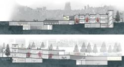 2- Temporary exhibitions (upcycled walls with niches where art pieces are displayed). These walls that are penetrated with other functions in order to remind users of the main purpose of the project.