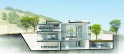 project program includes Exhibition spaces , library, lecture halls, workshops, multi-purpose room, and a Traditional cafe with a panoramic view.