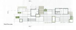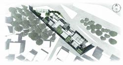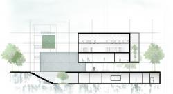 - Users won’t pass each other in corridors anymore, but meet in vivid places, in a unique space bathed in soft light, with surprising and changing views.- The main facade of the building opens on the greenery and vast public space covered by lawns and partly wooded. The building is thus seen as an open space revealing the activities taking place in its heart and stands as an architectural and academic emblem of the future neighborhood.