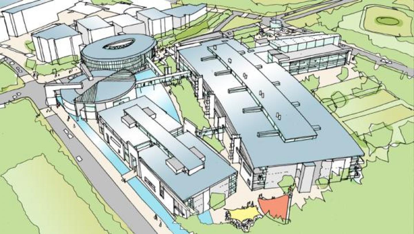 east campus design incorporates a number of elements: library learning commons, teaching blocks, auditorium, laboratories and research centre all assembled around a civic green space.