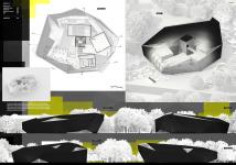 The object is to have one common exhibition space, which will contain smaller spaces in the form of cuboids. The program of the building is diverse exhibition spaces as well as two cinema rooms for 156 and 143 people, cafes and restaurants.