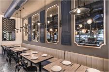 designed bronze lightings and dark thonet wood chairs harmonised with the restaurant culture, those