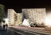 The link to the city as the context of the project is achieved by several means. The general orientation and arrangement of the building put an emphasis on the city axis and establish a visual connection between the city and the landscape behind the site. On the other hand, cultural and historical identity of the city of Qom became the driving force behind the project. Qom, not far from the capital, is the home of the worlds largest Shia seminaries and considered holy by Shia Islam. Therefore the form of arch, as a basic element of Iranian/Islamic architecture, was selected to act as a visual representation of the identity of the city. On another level, this iconic form can also present itself as an abstract shape adapted to a contemporary visual language. It also plays a crucial role in defining the public area beneath it and connects all the open areas of the project. The general form of the project also responds to the climatic conditions of the area and creates continuity and a united whole.