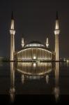 The moonlight effect on the dome was created by directed-lights from minarets. Narrow beam fixtures were used to accent the star-shaped-section of minarets creating smoothly degrading-light-effect along the body and to highlight balconies.