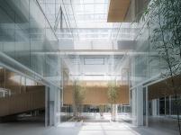 The introduction of three atriums and interior glass curtains not only light up the building from inside but also establish a progressing spatial order to space. When following the designed circulatory path across the building, one constantly experiences alternating height differences that is signified by layers of glass curtains., which is very much relatable to human scale.