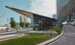 Located along the Eskisehir Boulevard in Ankara, Turkey, YDA Center Showroom is the sales office of a mixed use office complex. The main idea behind the design of the showroom was to create a floating roof with a transparent façade in order to visually connect the boulevard to the plaza of the mixed use complex.