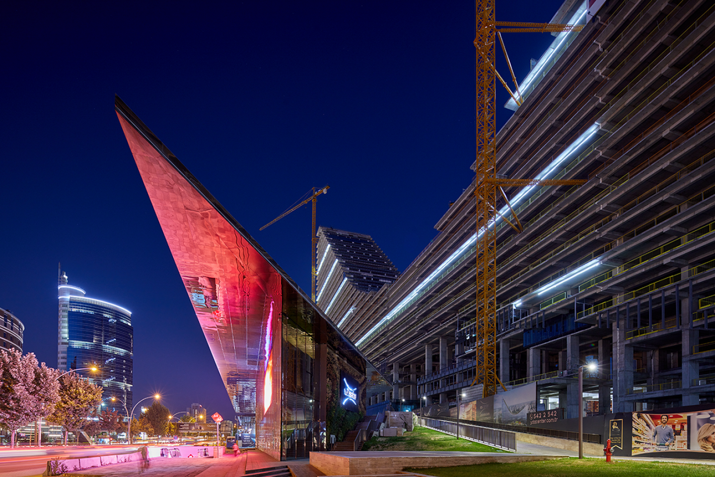 Located along the Eskisehir Boulevard in Ankara, Turkey, YDA Center Showroom is the sales office of a mixed use office complex. The main idea behind the design of the showroom was to create a floating roof with a transparent façade in order to visually connect the boulevard to the plaza of the mixed use complex.