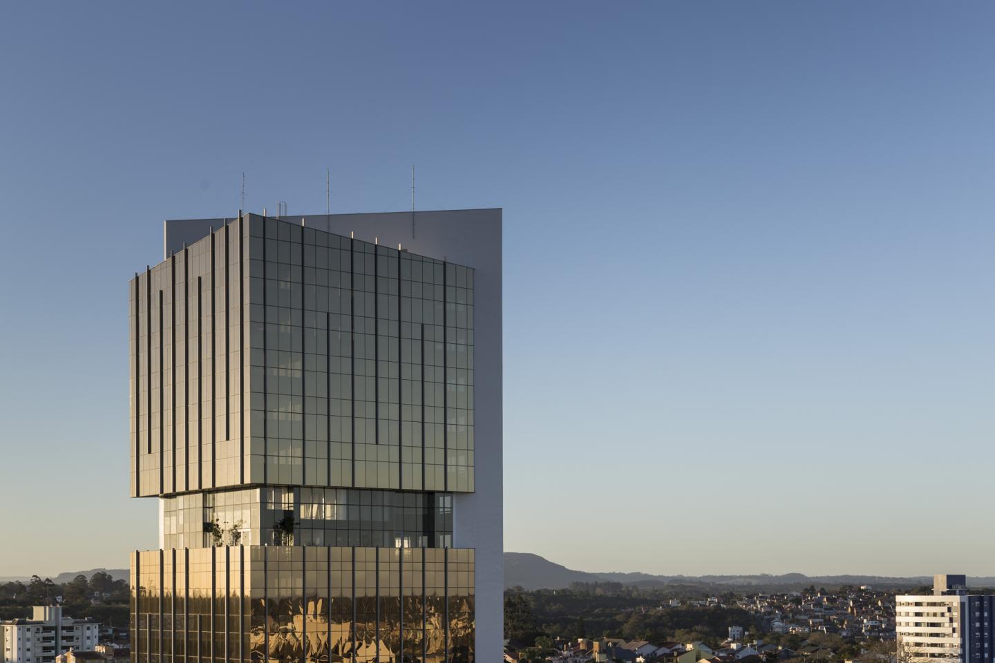 The 12th floor of the Golden Tower was marked on the facade by a observatory which interrupts the volumetric giving dynamism and movement and sheltering the building living areas.