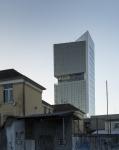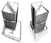 The strength of the two prisms with triangular base with a glass surface, comprising elegant and contemporary lines of its volumetric together with "brises" enhance vertical upright assembly.