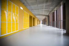 4.800 sqm with 16 class rooms, one covered sports ground, one covered cafeteria, 2 polyvalents room