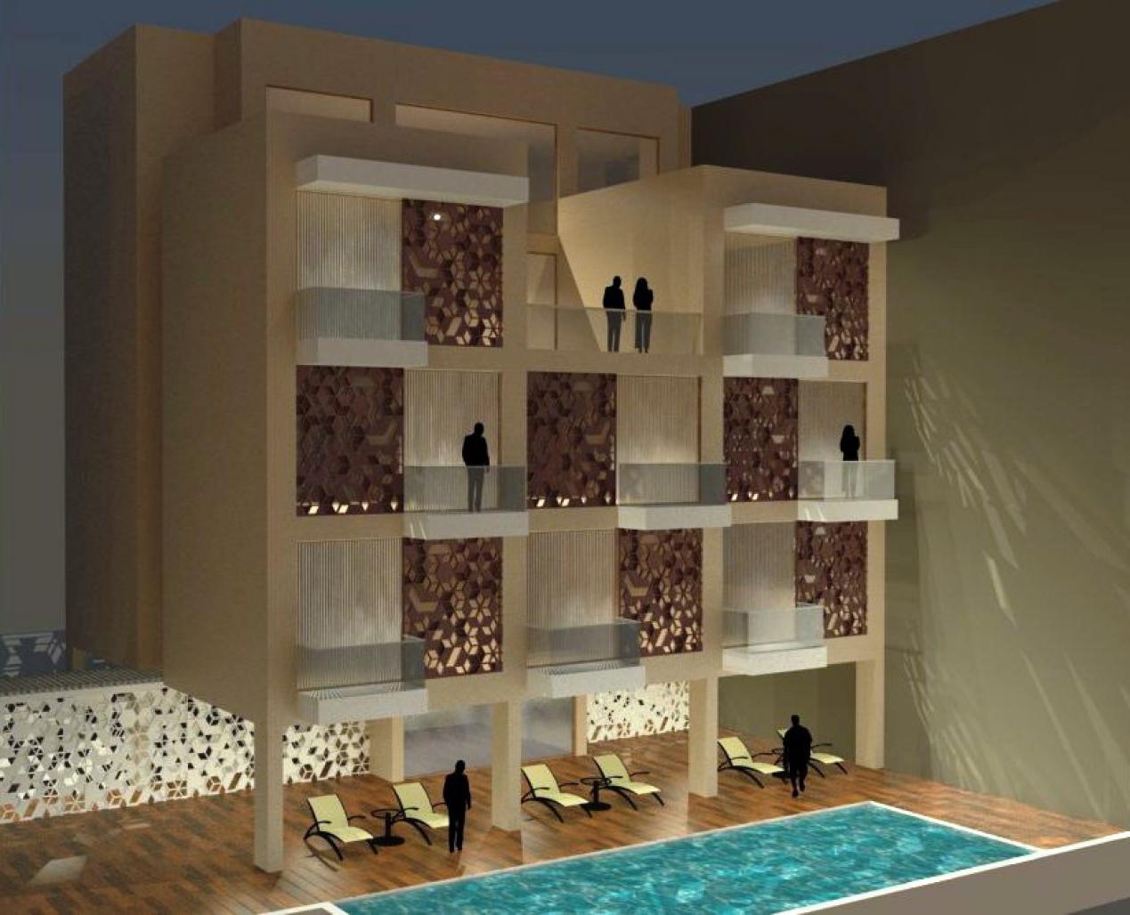 The project is a proposed as an expansion to an existing hotel in Udyog Vihar, Gurgaon. The architecture aims to construct new programmatic blocks, while integrating the existing features of the hotel like restaurant, banquet, etc with contemporary interventions with the predominant site restrictions. The prime requirement of the client was to develop a service apartment with maximum no. of rooms within the permissible FAR. Since the area has no existing views the building’s design in introverted. The key element will be the swimming pool which will be on the rear side of the plot. The stilt area is designed both for parking as well as partly used for outdoor decking for the pool. All the terraces, balconies & views are created keeping the swimming pool view in mind & therefore creating our own internal views.