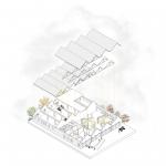 The first access to the Municipality Court is marked by new construction volumes as a sign of the new urbanity. They represent the main entrance to the new town square, a meeting place for residents, municipal employees and small local artisans, three elements that represent the community life. The continuous open space becomes fluid thanks to the landscape design: as a Jacquard loom it weaves the public life from the first to the second courtyard, where the new covered square and the auditorium bring the space back to life with day and night events. A residence for elderly people and a building with apartments, common areas and open plan offices complete this courtyard. The restoration project also incorporates new functions in a shed-roof building that will host a fitness center and covered parking.