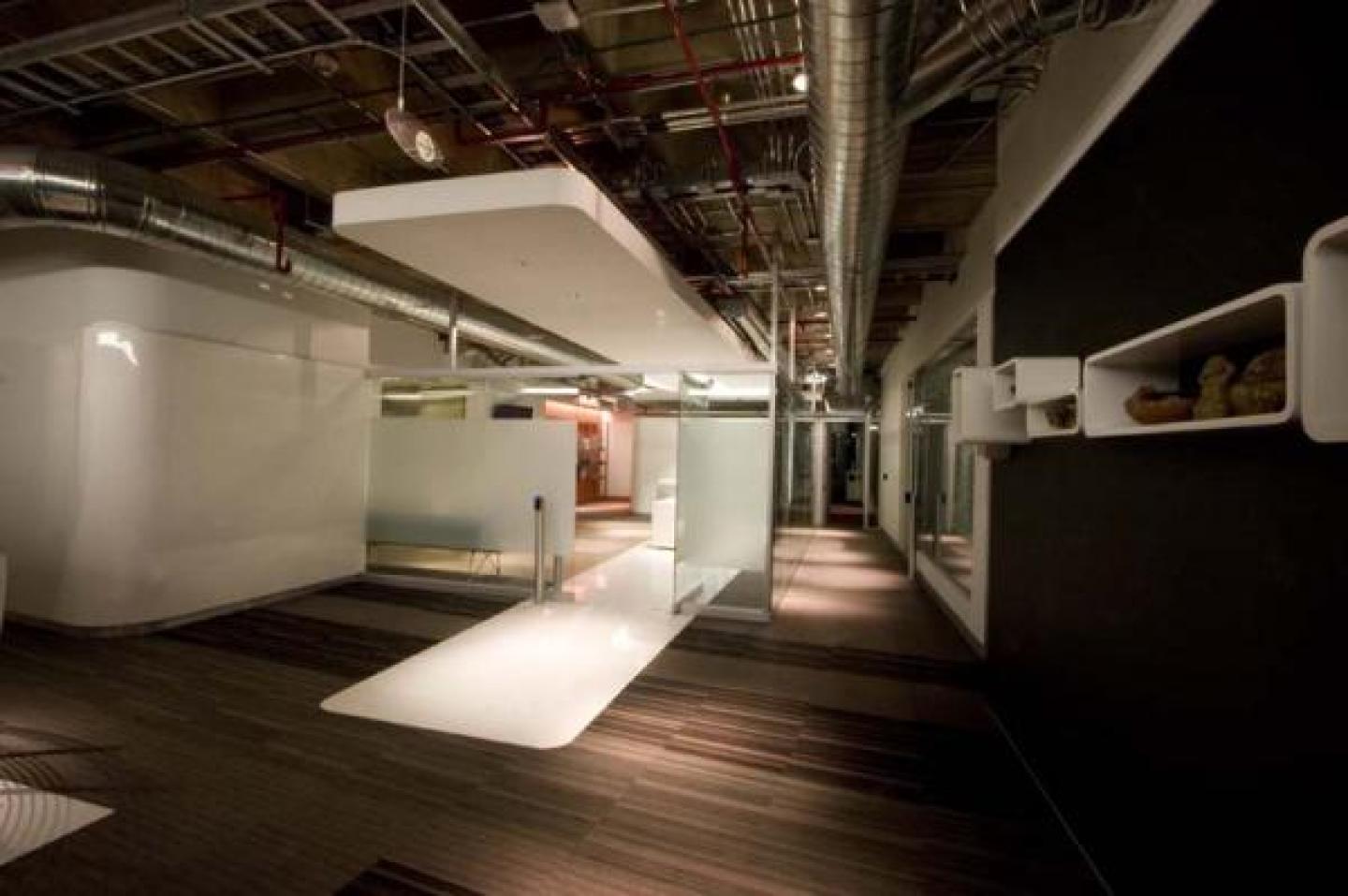 The corporate offices are divided in two levels connected in the center by a helical stairwell specially design for this project by a well known Mexican sculptor. Standing out and surrounded by 2 bright white surfaces, the centre of services is a different approach to the way this is usually solved in corporate offices in Mexico.