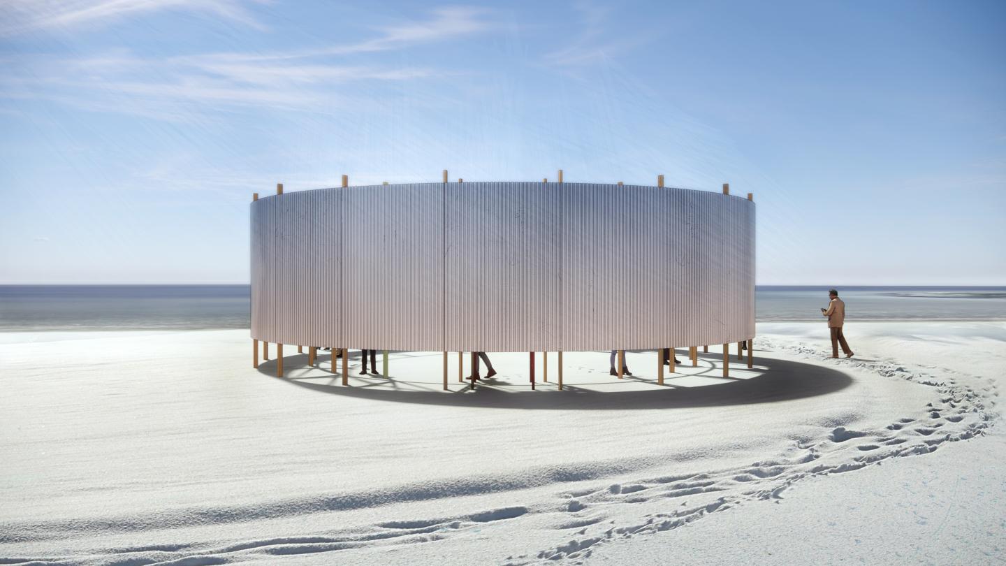 The installation is composed of 18 modular parts that can be shop-fabricated out of simple, widely available materials and quickly assembled on site. The lifeguard stand lives inside of one of these modules, allowing visitors to experience the installation from a higher point of view. At the end of the exhibition, all materials can be easily recycled or, as common building materials, donated to local shops and artists for future projects.