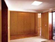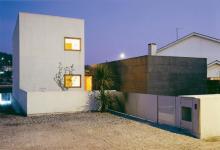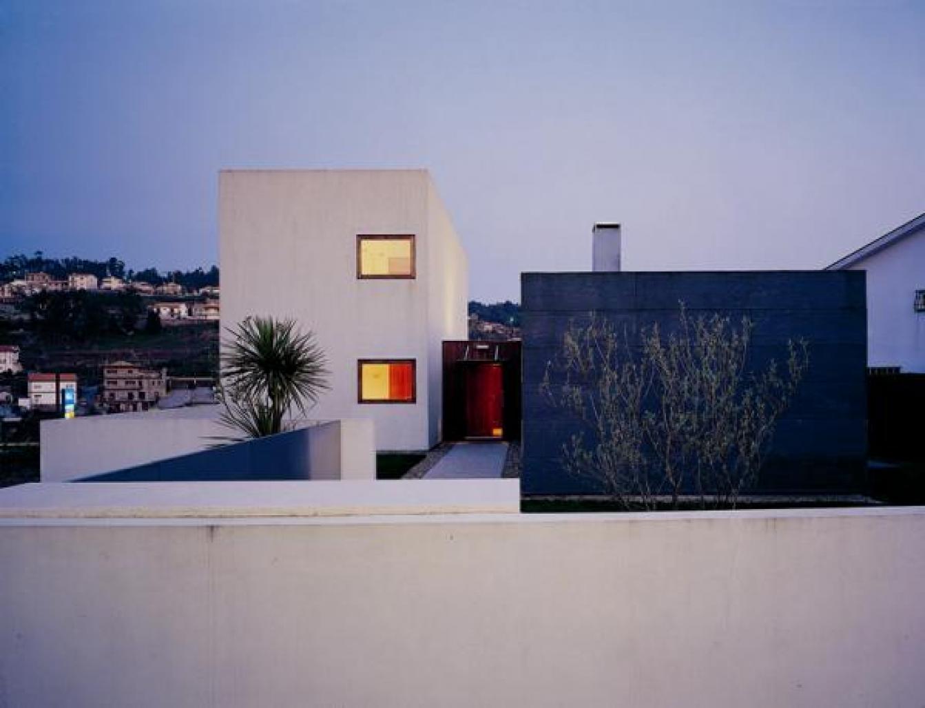 As for the house itself, it is organised in two functional, though complementary, autonomous groups, to which correspond two distinct volumes. Each one of these volumes has different relations towards the exterior space: one white and plastered seeks the most distant landscape; the other one, made with dark stone has a more direct contact with its interior ground.
