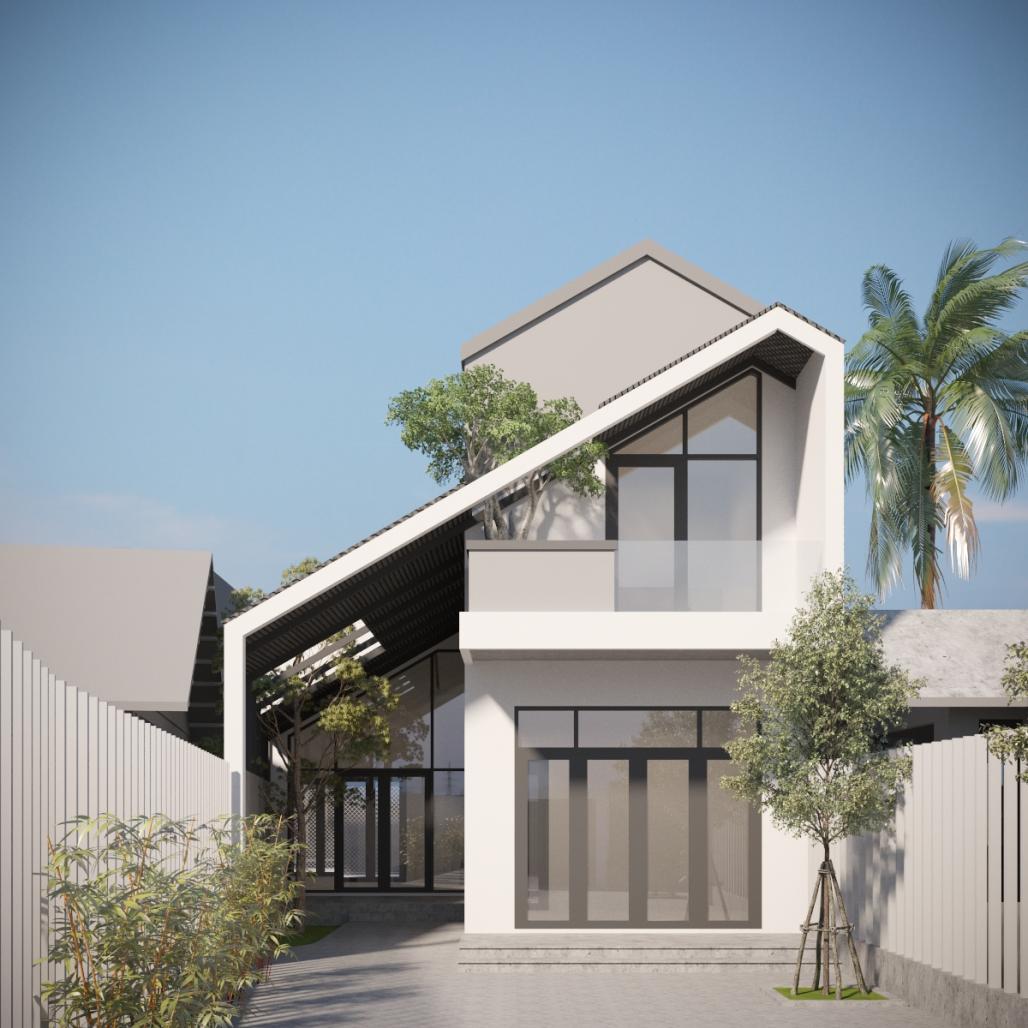The biggest difficulty of this project is that it is located on a slanted piece of land, extending to the back. So, all functions of the house are moved to the rear of the site to take advantage of its width. Simultaneously, help the house avoid the dust and noise of the road with many layers of green trees in front of the yard.