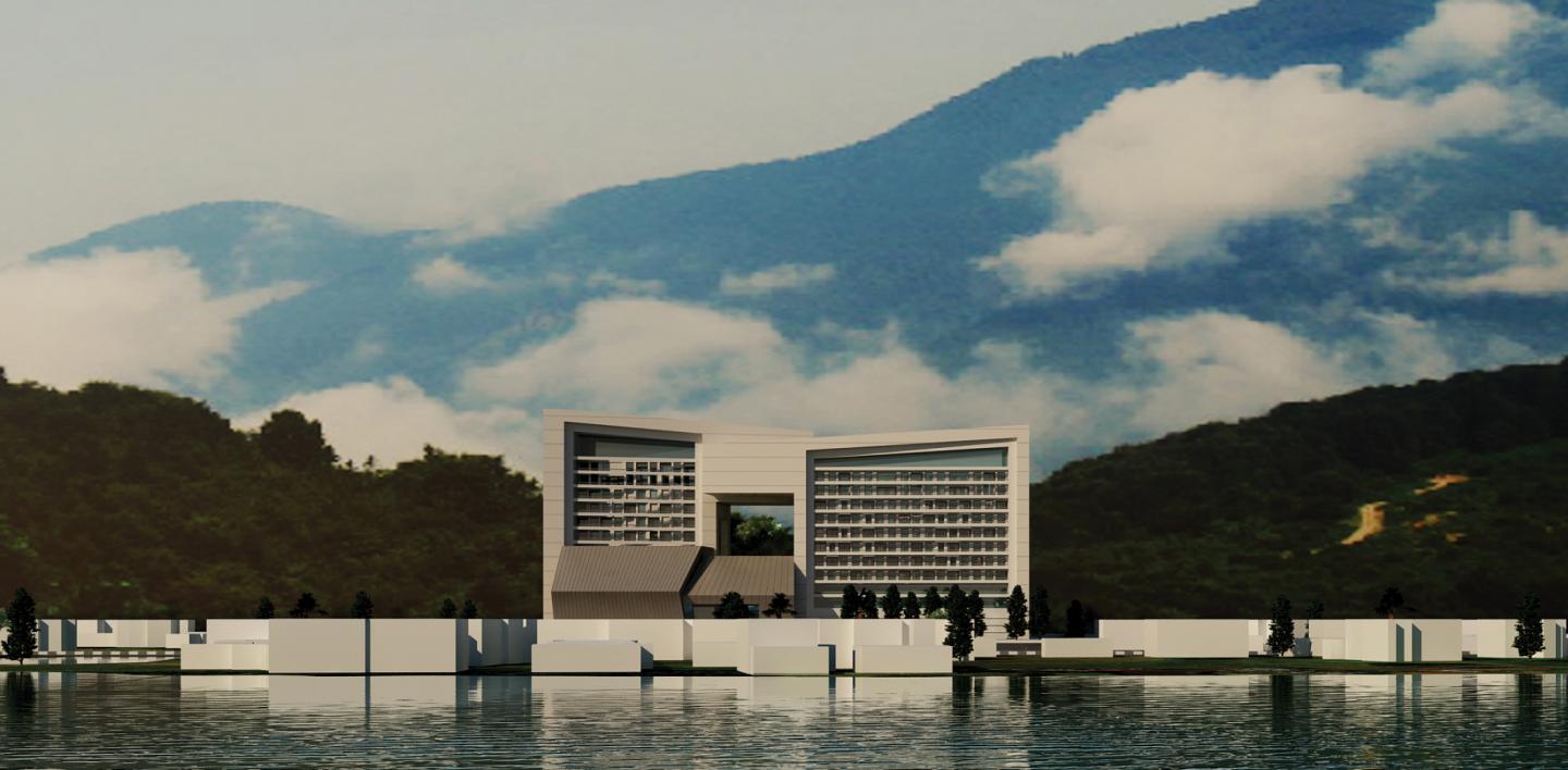 Due to the geometry of the land and the position of the sea and the forest, the building is stretched from east to west. In this way, air blindness and proper sea and forest views became possible for most of the spaces in the complex. The building was also protected from ravages and westerly winds.